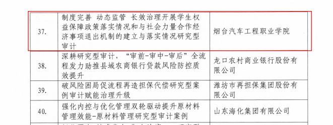 近日,山东省审计厅公布2025年度全省内部审计研究型案例征集评选结果,我院申报的内部审计案例经过严格评审,荣获优秀案例。此次获奖是我院深入贯彻我省内部审计工作“科学规范提升年”行动要求,扎实推进内部审计建设取得的又一重要成果。