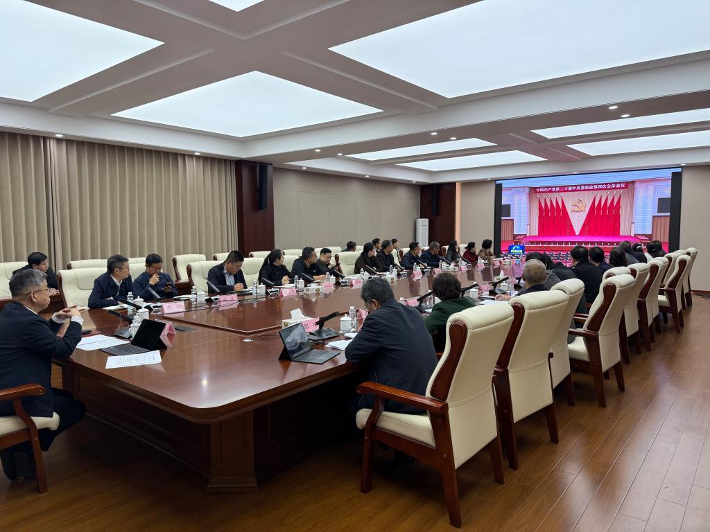 10月29日上午,学院党委理论学习中心组举行第十三次集体学习,深入学习贯彻习近平文化思想和党的二十届四中全会精神。党委书记秦桂建主持会议,党委理论学习中心组成员参加会议,各部门、单位主要负责同志列席会议。市教育局副局长杨林、校管科负责人高磊列席旁听。