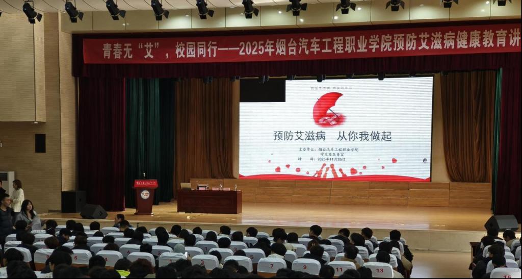 2025年12月1日是第38个世界艾滋病日,为增进同学们对艾滋病的科学认知,提升自我防护意识,11月26日,学生处(团委)在图书馆报告厅组织开展了艾滋病防治健康教育讲座,各系学生代表共800余人参与活动。