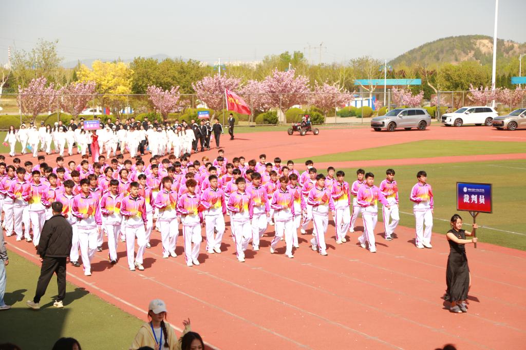 开幕式在激昂的《运动员进行曲》中拉开帷幕。国旗护卫队、校旗护卫队步伐刚健入场,随后彩旗方队、花束方队、裁判员方队、教职工方队以及8个系的运动员方队依次步入会场,在主席台前接受检阅。各方队斗志昂扬、口号响亮,通过精心编排的队列展示,巧妙融入各系专业特色,充分彰显烟汽学子拼搏奋斗的精神面貌,赢得现场掌声与喝彩不断。