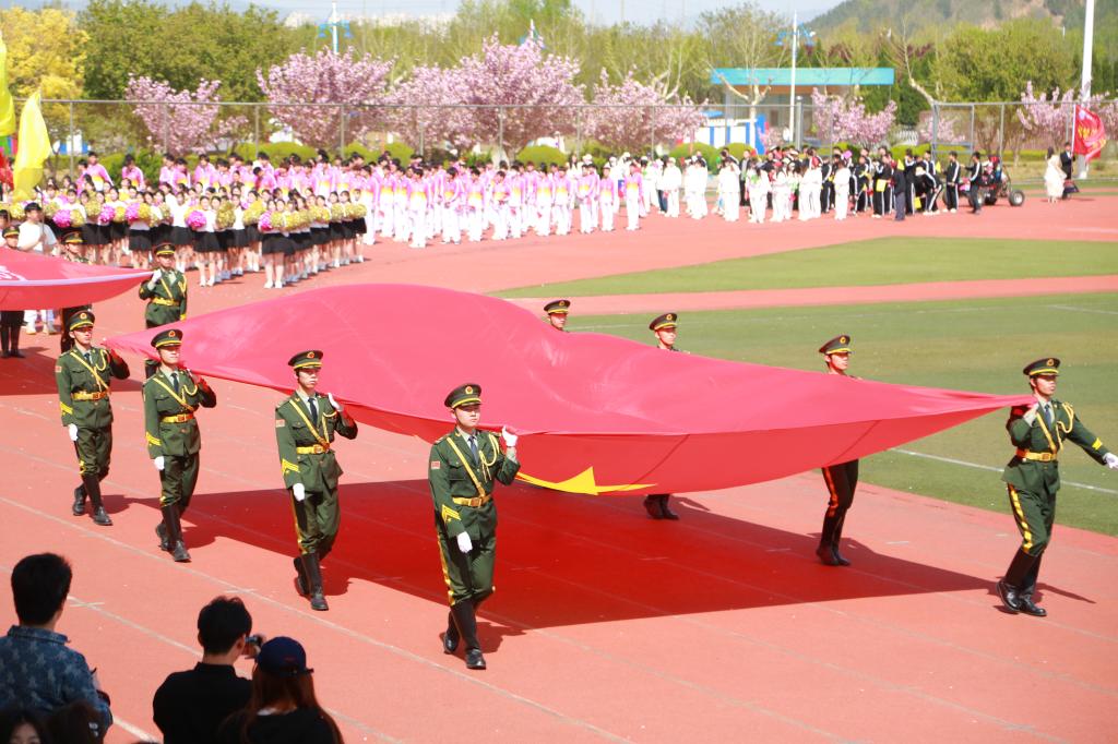 入场式后,庄严的升旗仪式开始。国歌奏响,五星红旗冉冉升起。全体师生肃立齐唱,民族自豪感与爱国热情在每个人胸中激荡。