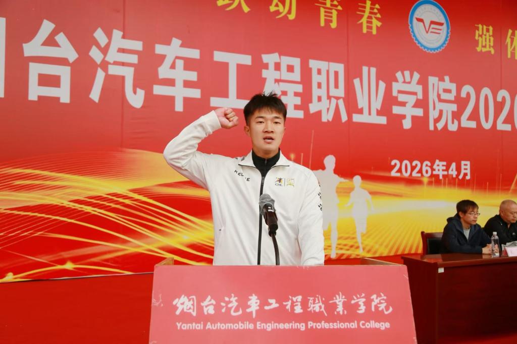 春风开篇,体育强魂。4月23日上午,烟台汽车工程职业学院2026年田径运动会开幕式在学院东运动场举行。校领导秦桂建、郭峰、曲耀春、王延强出席开幕式,学院各部门负责人在主席台就座,近万名师生共同参与。开幕式由副院长王延强主持。