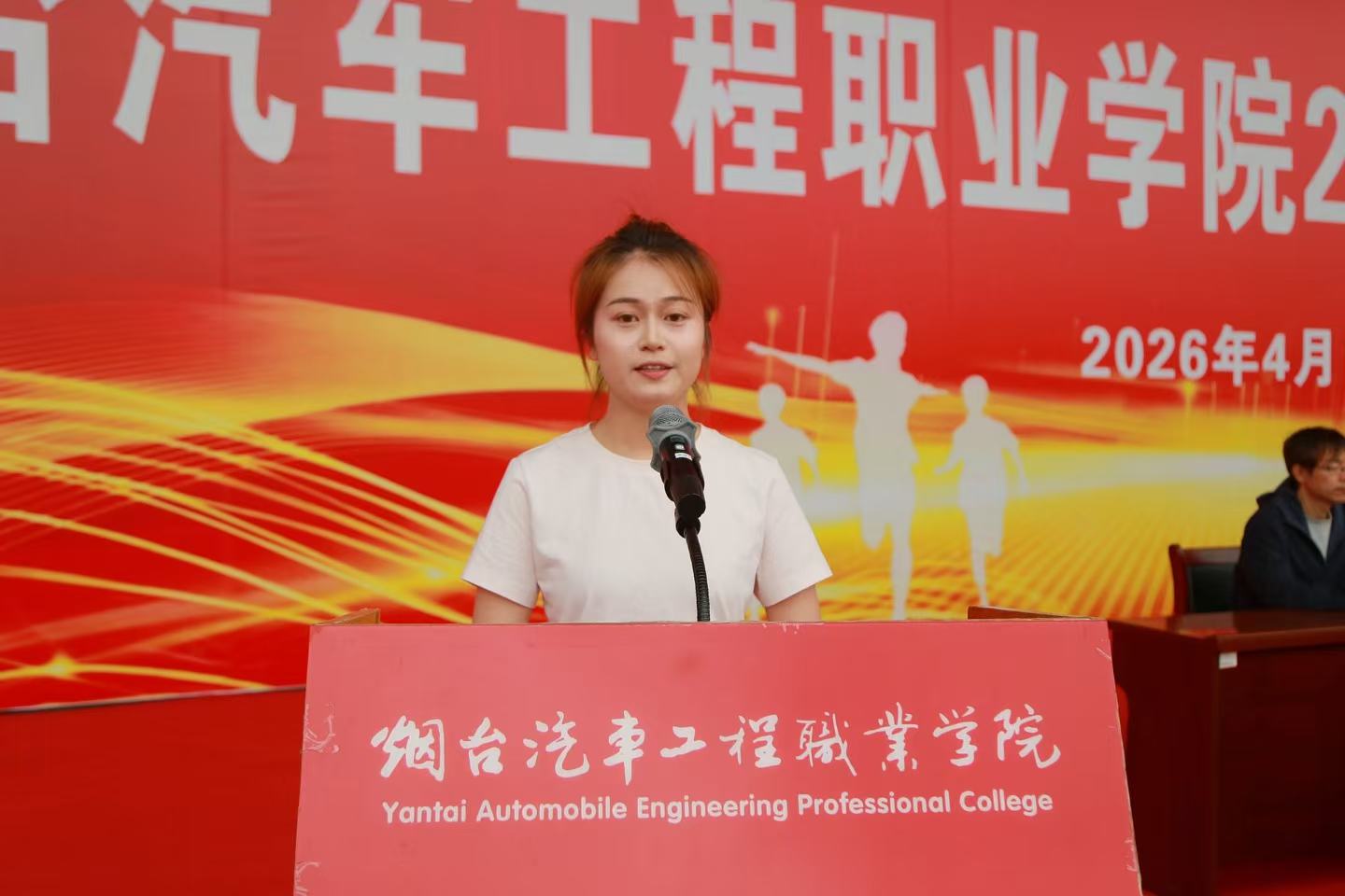 党委书记秦桂建宣布烟台汽车工程职业学院2026年田径运动会正式开幕。