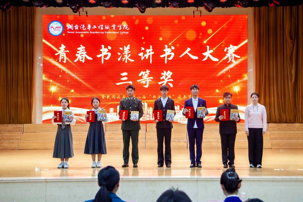 为深入推进书香校园建设,助力2026年烟台市全民阅读活动周走深走实,4月27日下午,烟台汽车工程职业学院第二届青春书漾讲书人大赛在学院报告厅成功举办。本次大赛作为烟台市全民阅读活动周重点活动,以“讲书浸润青春美,书海扬帆美育行”为主题,吸引全校8个系部100余名学生踊跃参与,经视频海选、网络投票、专业评审层层选拔,12名优秀选手晋级决赛,800余名师生齐聚现场,共赴一场书香与青春交融的文化盛宴。