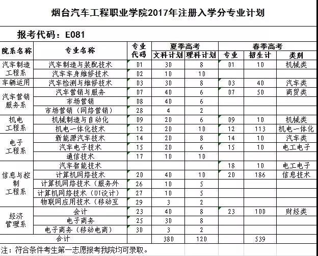 根据山东省教育厅《关于做好2017年专科(高职)注册入学招生工作的通知》安排,2017年烟台汽车工程职业学院继续开展专科(高职)注册入学招生工作。具体安排如下: