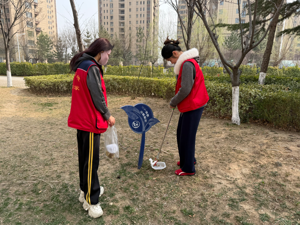 活动现场,志愿者们身着统一服装,手持扫帚、垃圾夹、抹布等工具,迅速投入到社区环境整治工作中。大家分工协作、干劲十足,重点对社区主干道、绿化带、楼道角落、公共健身区等区域进行全面清扫,细致清理落叶、纸屑、烟头等杂物,不放过任何一处卫生死角。面对堆积的杂物与顽固污渍,同学们不怕脏、不怕累,弯腰俯身、耐心清理,以饱满的热情投入劳动,用双手为社区“焕新颜”,改善社区公共环境,助力文明社区建设。